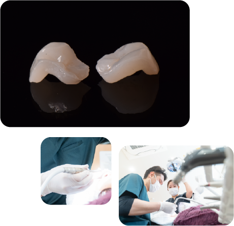 虫歯治療ではなるべく金属を使用せず、コンポジットレジンを使用した修復治療を行います。金属を使用しない治療法は、金属アレルギーの不安のある方も安心して治療を受けることができます。