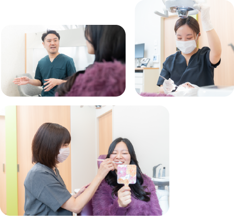 当院ではまず丁寧にカウンセリングを行い、歯の状態、治療方針や方法を分かりやすくご説明し、ライフスタイルや価値観に沿った治療を提案いたします。