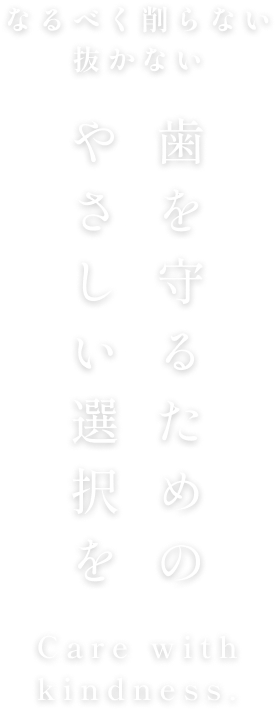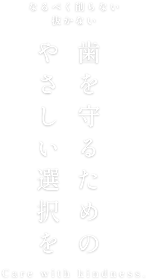 お口の健康を長く保つために、「削らない・抜かない」MI治療の考え方を基盤に、できる限り歯を残す治療を行っています。